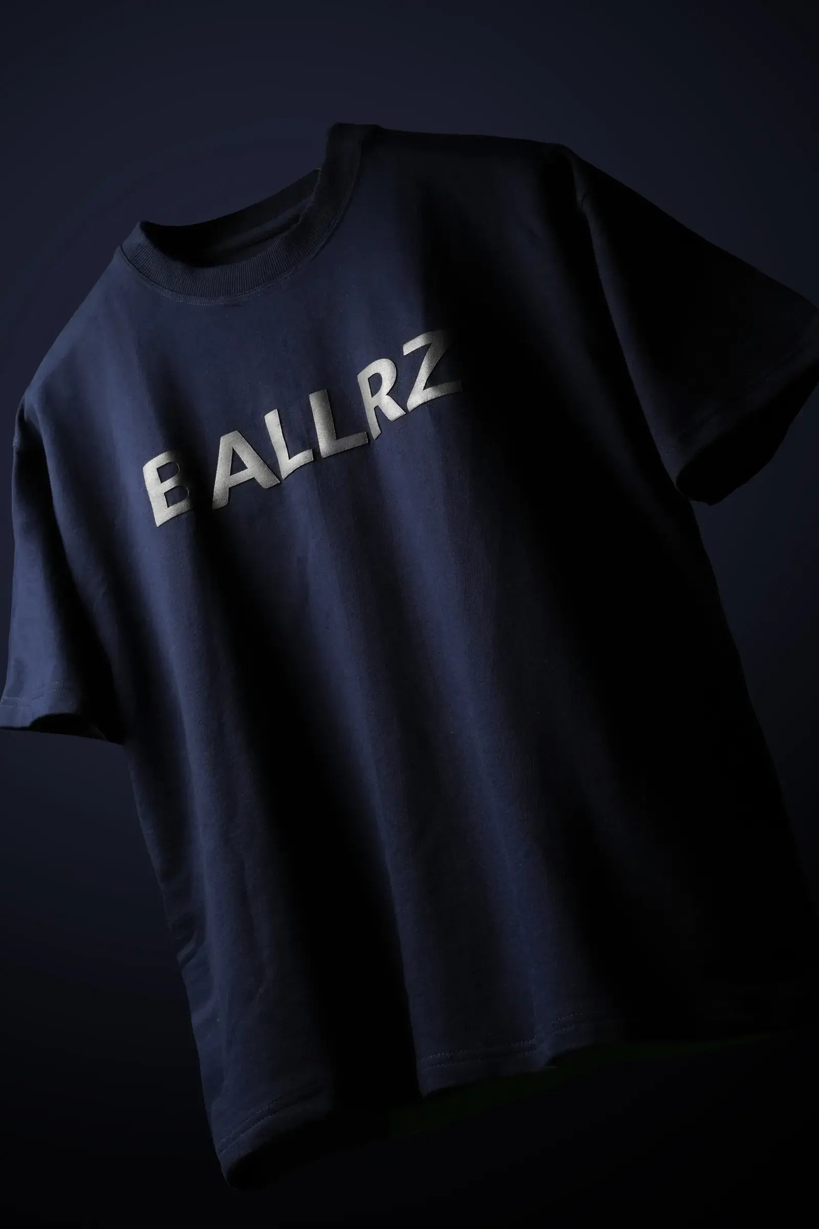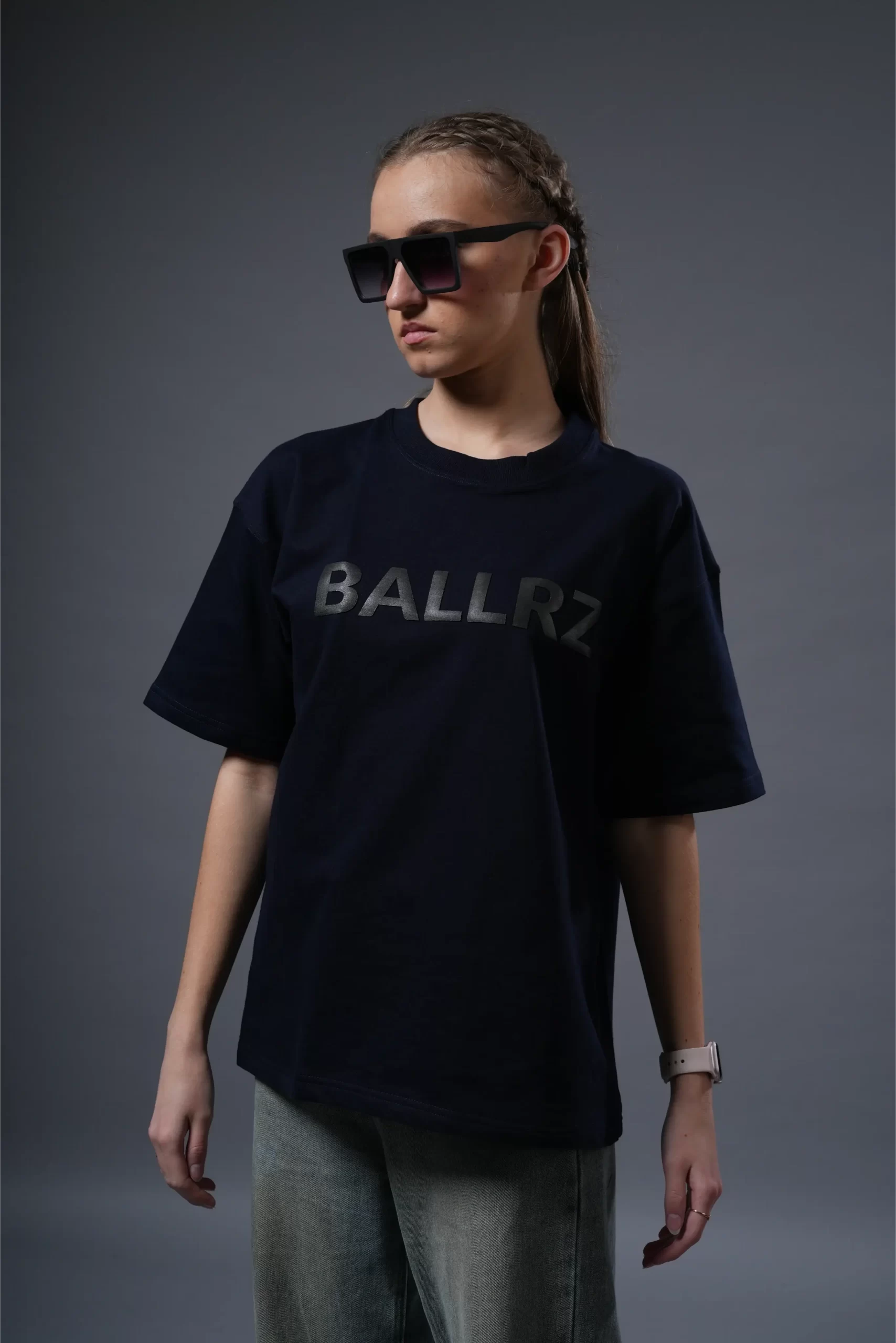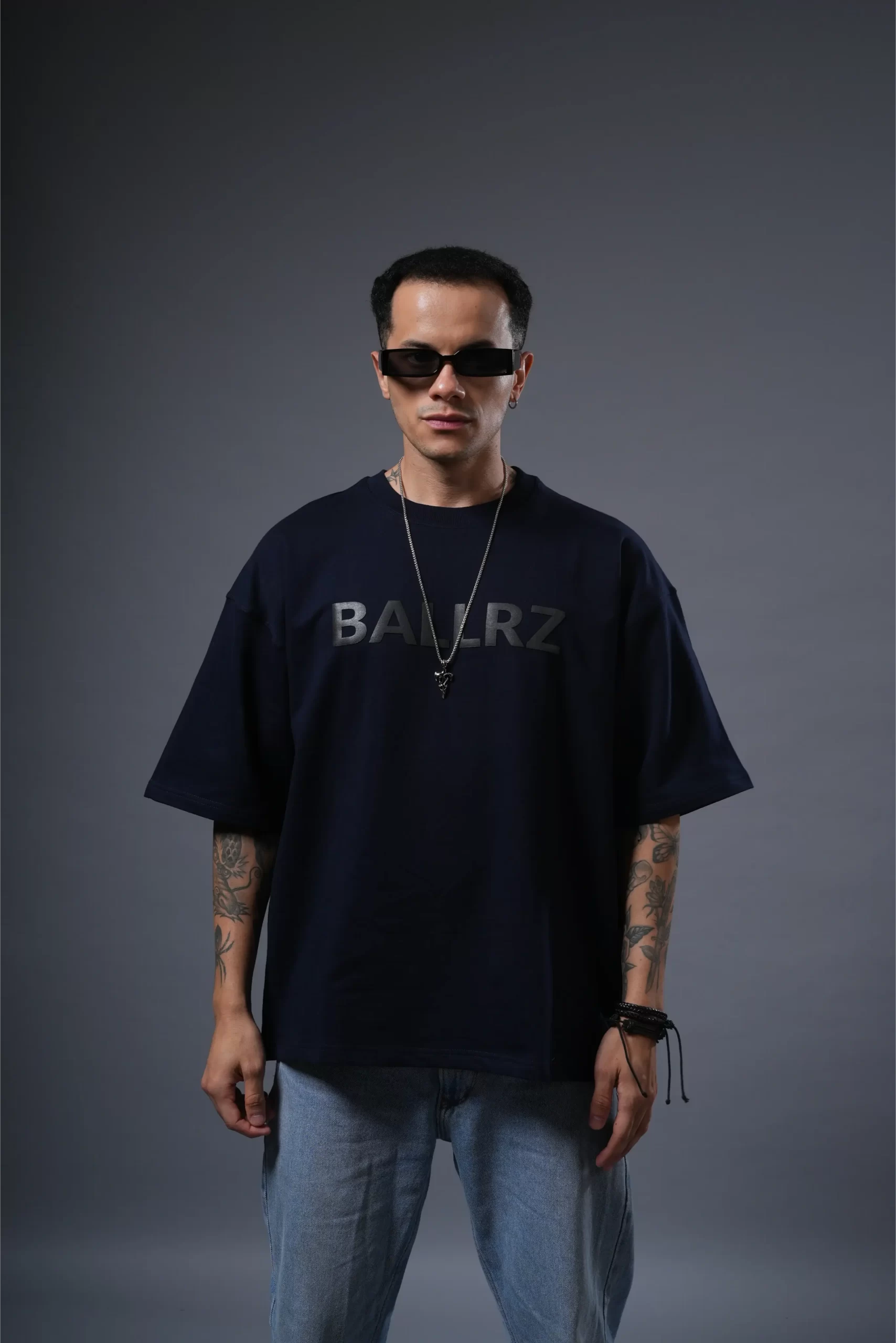 This deep navy oversized tee is crafted from premium heavyweight cotton, designed for ultimate comfort and authority. The matte black BALLRZ logo across the chest gives it a stealth aesthetic, reflecting power and understated luxury.