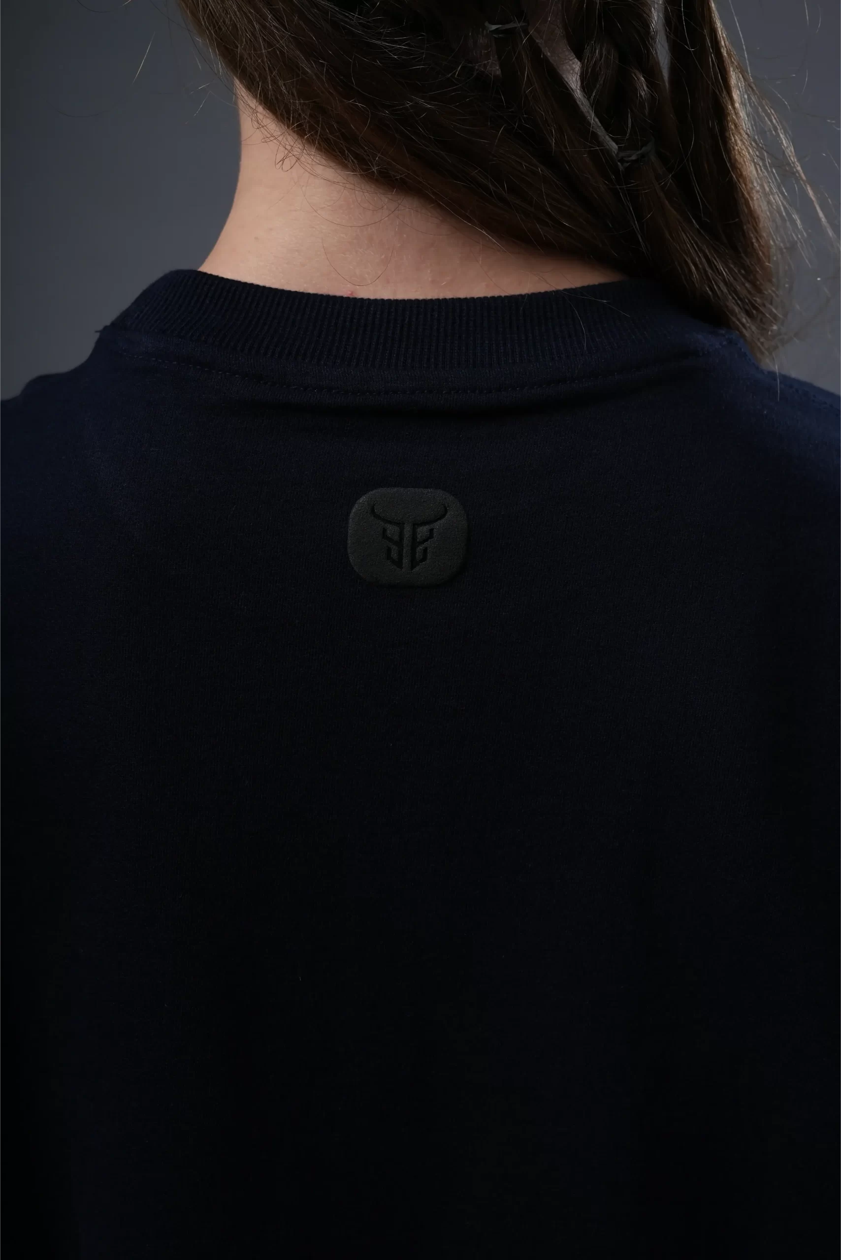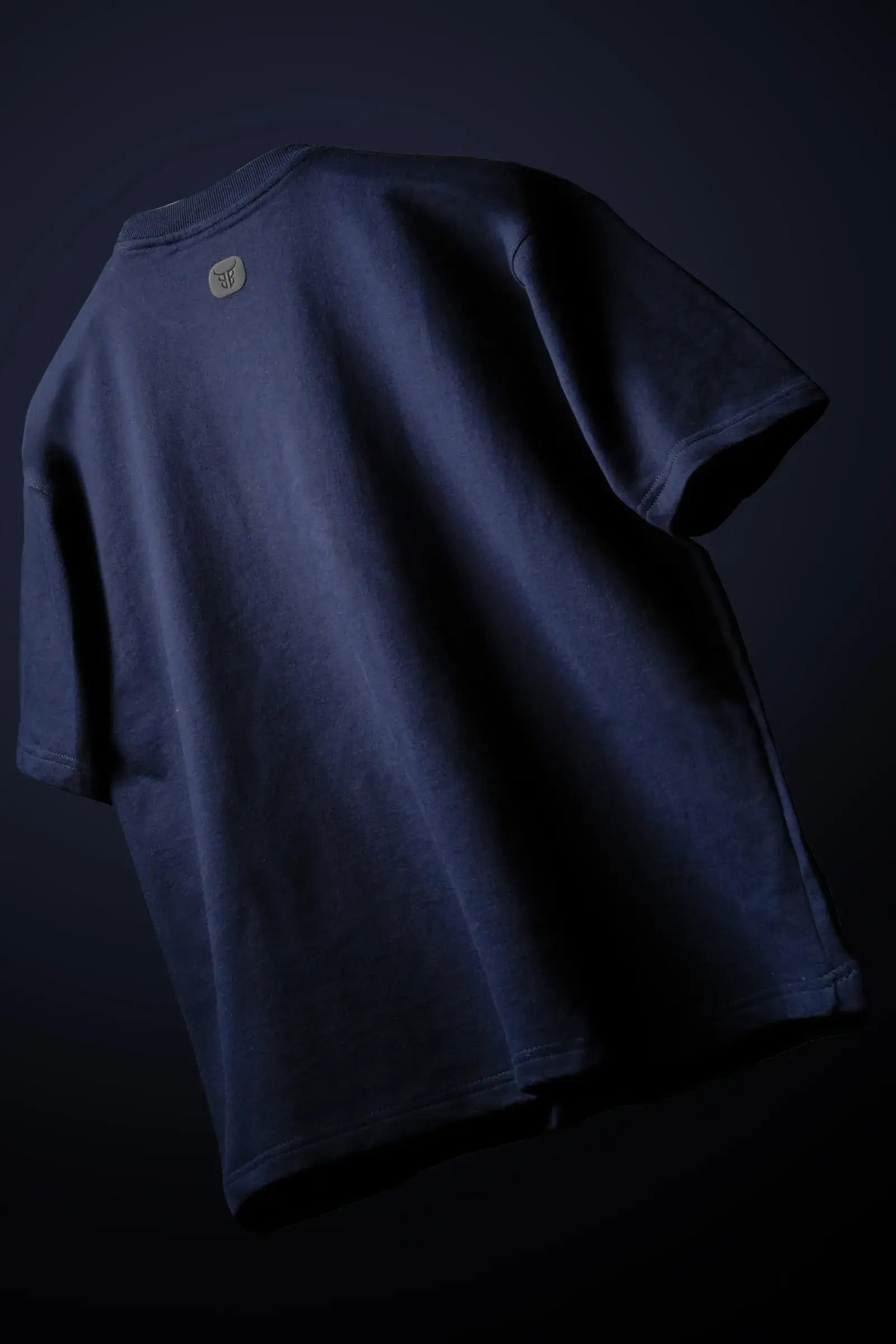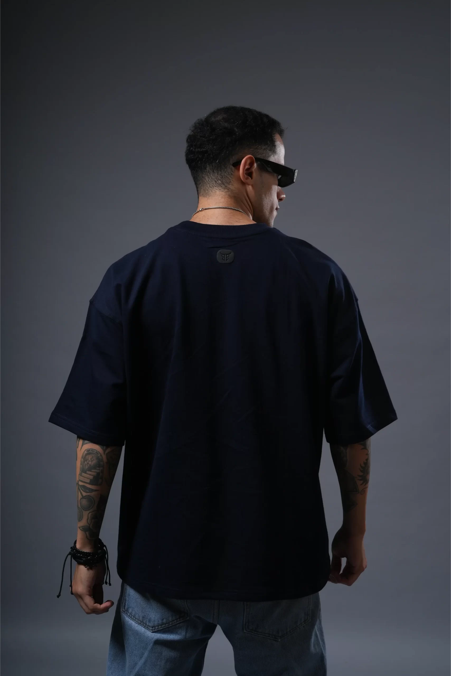 This deep navy oversized tee is crafted from premium heavyweight cotton, designed for ultimate comfort and authority. The matte black BALLRZ logo across the chest gives it a stealth aesthetic, reflecting power and understated luxury.